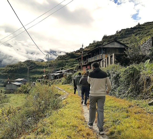 After two days of learning and sharing, it was time to return. We started our walk down through a forest and across landslide-prone slopes. When we reached the river, we saw that the only suspension bridge had been swept away by heavy rain. It was already getting dark. We were seven people, including two young girls, and some of us were already exhausted. With no lodges nearby, our only option was to climb back up the mountain- another two hours of steep stairs. We hiked for almost two hours and finally reached the same homestay we had stayed in before. Exhausted, hungry, but safe. The next morning, we started again, taking another route, walking for nearly four hours to find a bus back to Kathmandu.